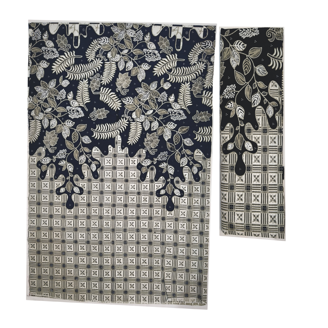 Tampil modern dan elegan dengan Kain Batik Kontemporer. Perpaduan unik antara motif dedaunan yang rimbun dengan pola geometris yang tegas dalam palet warna biru navy dan broken white yang berkelas.